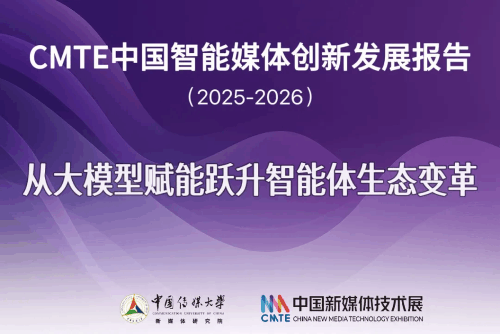 联合中国传媒大学媒体融合与传播国家重点实验室新媒体研究院,重磅推出《CMTE中国智能媒体创新发展报告(2025-2026)》。报告以“从大模型赋能跃升智能体生态变革”为主题,深度解码智能体如何驱动媒体工作流再造、颠覆内容生产模式、重塑用户互动体验、引领产业生态升级,全景呈现2025-2026年度中国智能媒体的创新图谱与最佳实践案例,前瞻研判中国智能媒体重点发展趋势。