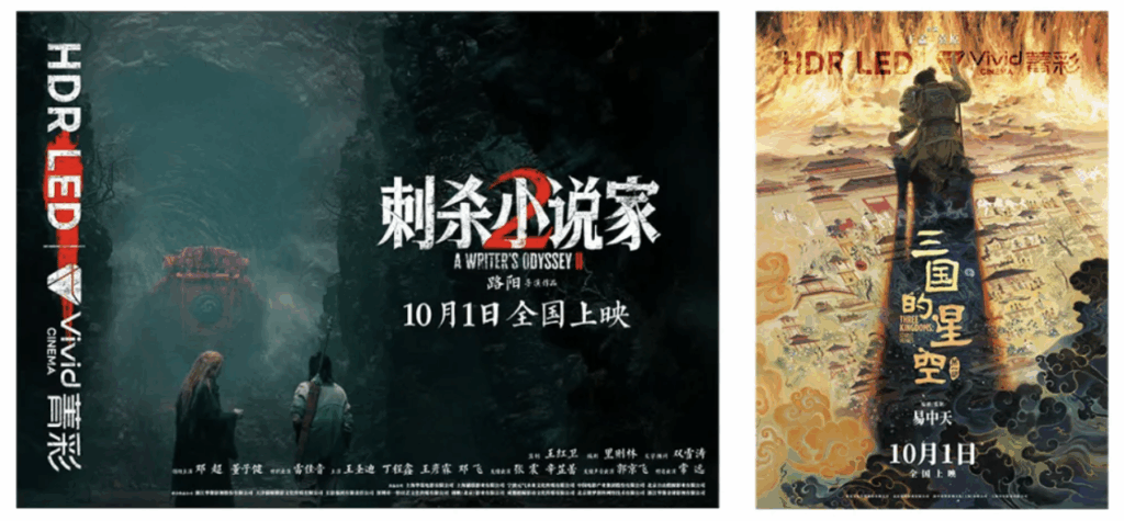 在国家电影局的指导下,中国电影科学技术研究所(中央宣传部电影技术质量检测所)联合华夏电影发行有限责任公司、华为技术有限公司、华夏利亚德(北京)电影科技有限公司、深圳市洲明科技股份有限公司、中央宣传部电影数字节目管理中心、西安诺瓦星云科技股份有限公司等单位,制定了《菁彩影院技术 第2—1部分:LED影院菁彩影像发行母版技术规范》,对发行母版的制作环境与系统、图像特性以及数据包的峰值码率等技术要求进行了规定,在制版环节对亮度、高动态范围、帧率、码率等指标进行了处理和优化。依据标准制作的LED菁彩影像版本影片在LED显示屏上呈现出与常规版本影片差异明显的放映效果,为观众提供更清晰的图像细节、更丰富的图像层次、更震撼的画面冲击力。目前《三国的星空第一部》《刺杀小说家2》《浪浪人生》《风林火山》等菁彩Vivid版本影片已在全国范围内具备条件的影厅正式上映。