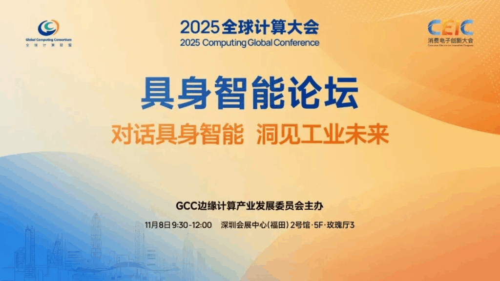 在此,我们诚挚地向各位发出邀请,相约深圳会展中心(福田)2号馆参与于11月8日全球计算大会(CGC2025)期间重磅举办的“对话具身智能,洞见工业未来——具身智能论坛”。这并非一场寻常的技术研讨会,而是一次为中国乃至全球智能产业寻找确定性的深度对话。