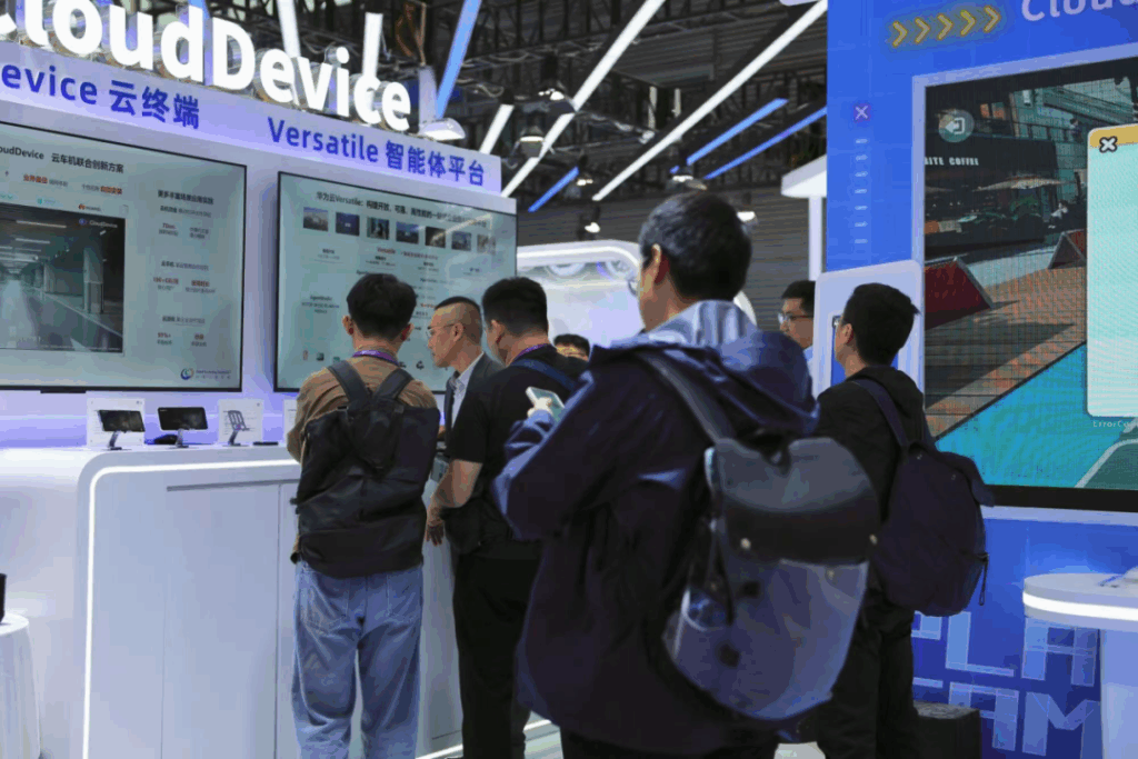 为直观展示与生态伙伴联合创新成果,华为云在CEIC展区设立了Versatile智能体平台、CloudDevice云终端互动体验。参会者通过云手机体验AI助手、云车机畅玩《原神》、通过云机顶盒体验XR体感网球,与机器人“呼噜仔”“悟空”语音交互等体验,直观感受“云智协同”带来的改变。