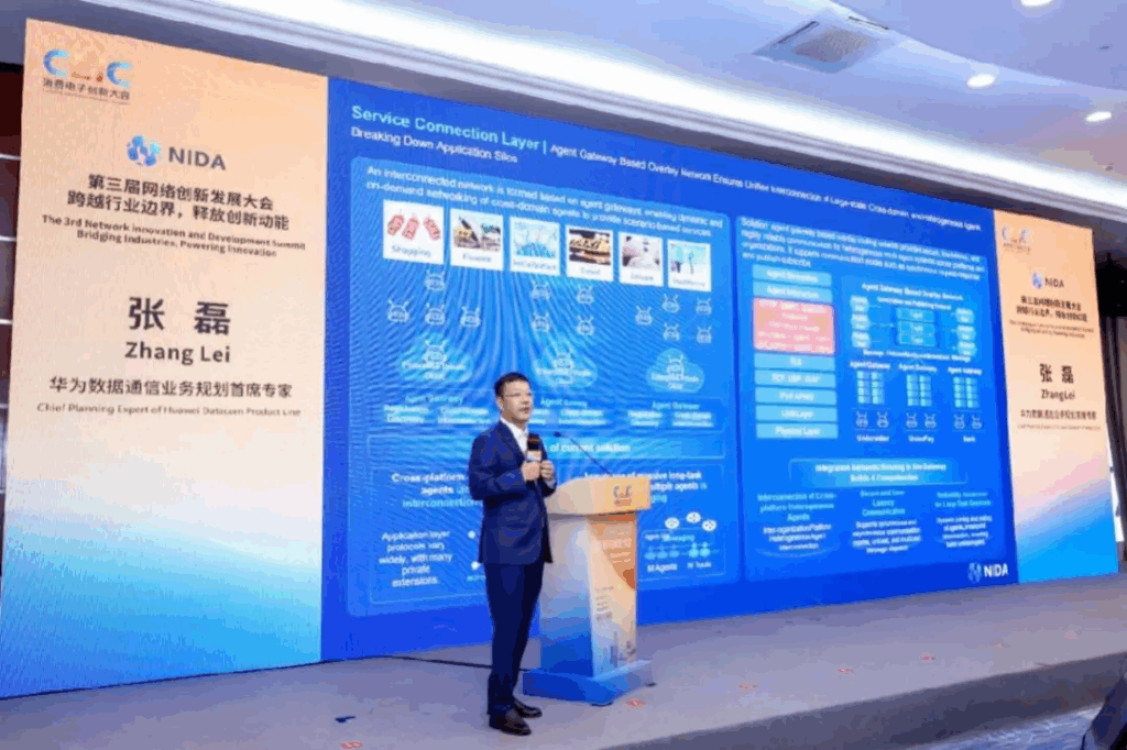 【深圳,2025年11月8日】在第三届网络创新发展大会期间,华为数数据通信业务规划高级专家(首席)张磊发表《智能体互联网架构与关键技术》主题演讲,旨在推动网络从“连接信息”向“连接智能”升级,支持千亿级智能体自主协作,重塑家庭、金融、医疗等领域的数字化服务。