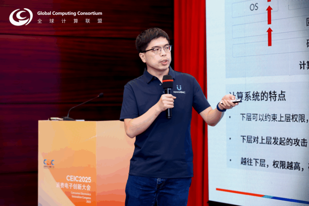 2025年11月8日在深圳举办的GCC 2025全球计算大会上,openUBMC携最新可信计算实践精彩亮相。openUBMC 社区技术委员会委员专家张超发表主题演讲《基于 BMC 构筑机密计算系统的可信执行环境实践》,系统阐述了通过软硬件开放组合,构建智能算力机密计算安全可信开放底座的创新方案,获得了与会者的广泛关注。