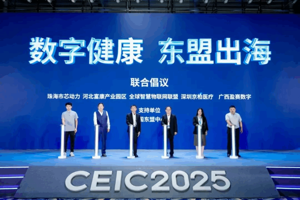 最后,在中国东盟中心的支持下,全球智慧物联网联盟秘书长胡才勇与河北富康产业园区董事长康献忠等人联合发布《数字健康东盟出海倡议》,为数字健康企业对接东盟市场、破解出海难题提供了重要指引。