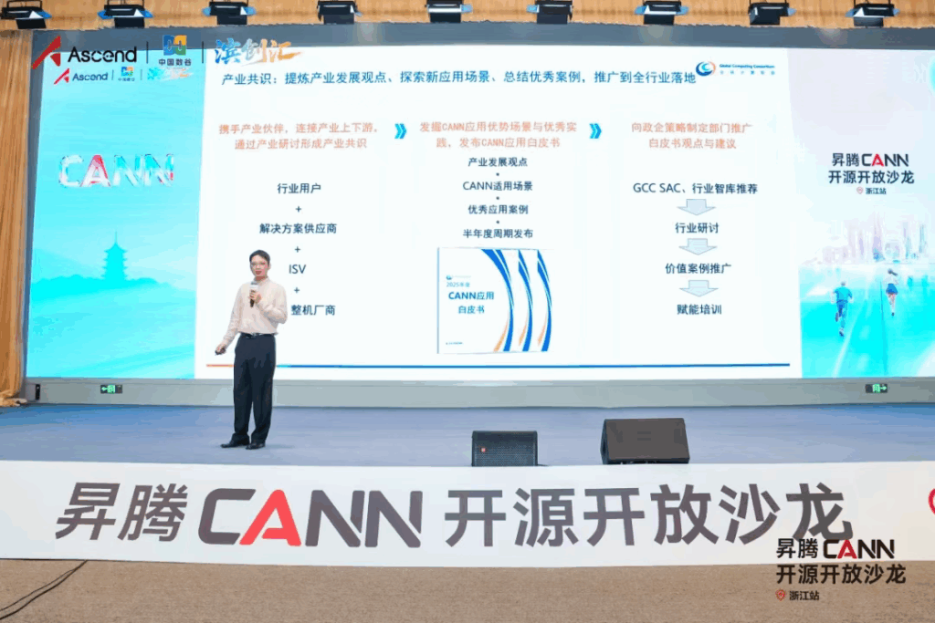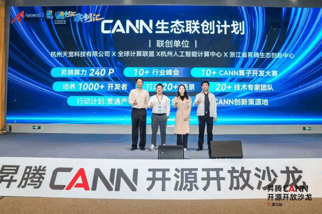 2025年11月14日,在杭州举行的“昇腾CANN开源开放沙龙·浙江站”活动中,全球计算联盟(GCC)携手杭州天宽科技有限公司、杭州人工智能计算中心、浙江省昇腾生态创新中心共同发布“CANN生态联创计划”,为GCC智算产发委在异构计算软件框架这一重要产业领域迈出坚实的脚步。