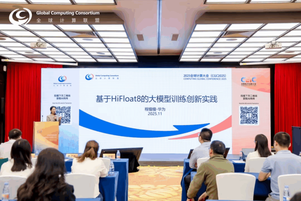 在刚刚结束的2025全球计算大会(CGC)智能计算分论坛上,华为技术有限公司2012实验室高级研究员程楹楹带来了关于新型8比特浮点数据格式HiF8的重磅分享。