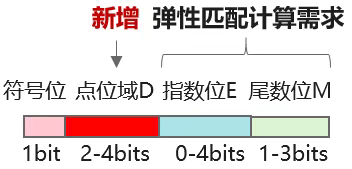 HiF8在数据格式上的创新在于引入可变长点位域Dot,基于该域的取值,数据所表达的阶码范围和数据精度可以灵活设定,从而使模型训练/推理所用的数据可以根据具体的计算需求选取更合适的阶码或精度,减少量化频次。