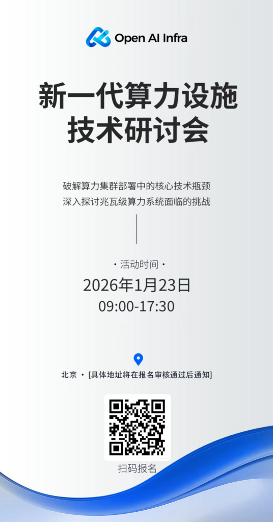 为破解算力集群部署中的核心技术瓶颈,深入探讨兆瓦级算力系统所面临的系统性挑战与技术突破路径,社区秉承“创新、开放、协作、共享”的理念,将于2026年1月23日在北京举办 “新一代算力基础设施技术(闭门)研讨会”。