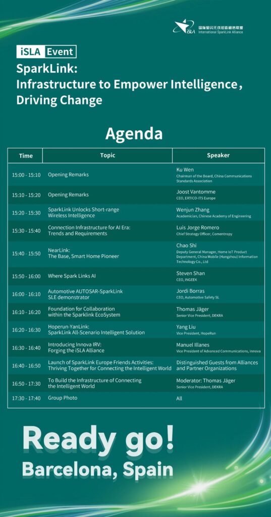 此次巴塞罗那星闪论坛以“SparkLink:Infrastructure to Empower Intelligence,Driving Change”为主题,聚焦星闪技术的前沿应用与生态共建,亮点纷呈: