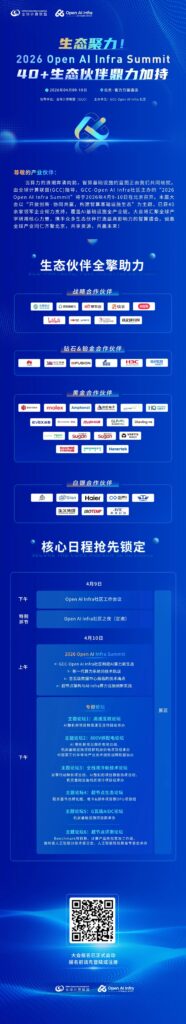 为更好地探索 AI 时代算力设施的未来演进之路,GCC-Open AI Infra 社区将在2026年4月9-10日,以“开放创新 协同共赢,构建智算基础设施生态” 为核心主题,举办2026 Open AI Infra Summit 。
