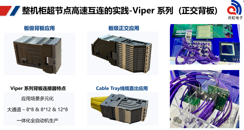 在单一超节点系统卡数由128~384卡持续提升的趋势下,庆虹电子的连接解决方案可满足高密部署与长周期运行的严苛要求,并已成功应用于多家行业头部客户的核心项目。方案的创新不仅体现在单品性能的突破,更在于以系统化思维构建全链路稳定互联与可靠接触,为AI基础设施的规模化扩展提供坚实支撑。