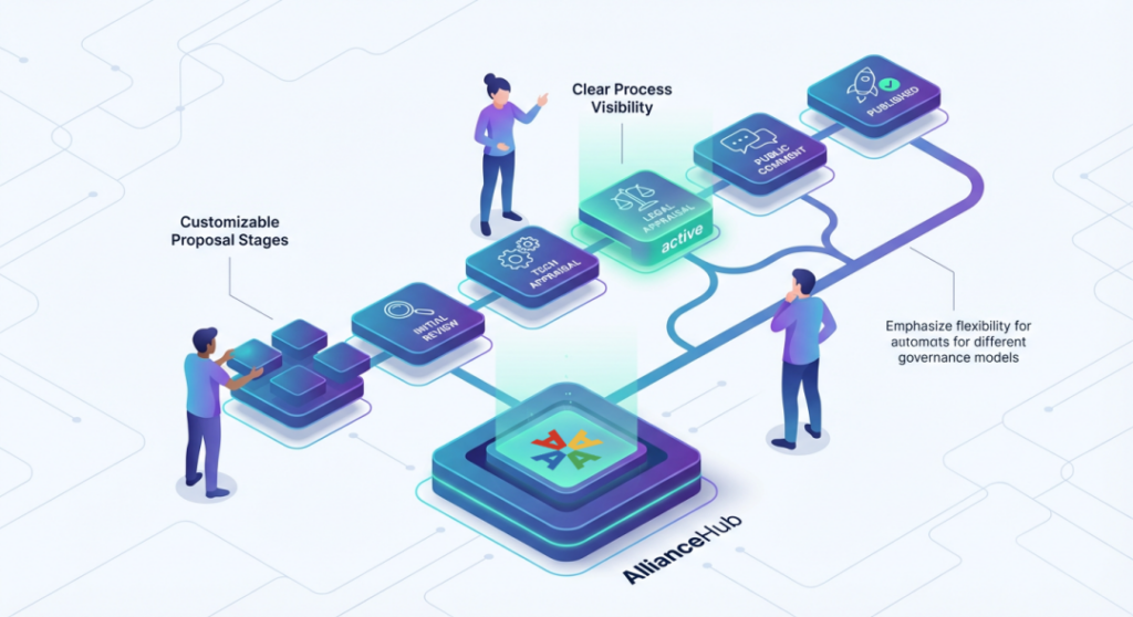 每个联盟都有独特的治理要求。AllianceHub 支持可定制的提案阶段:
