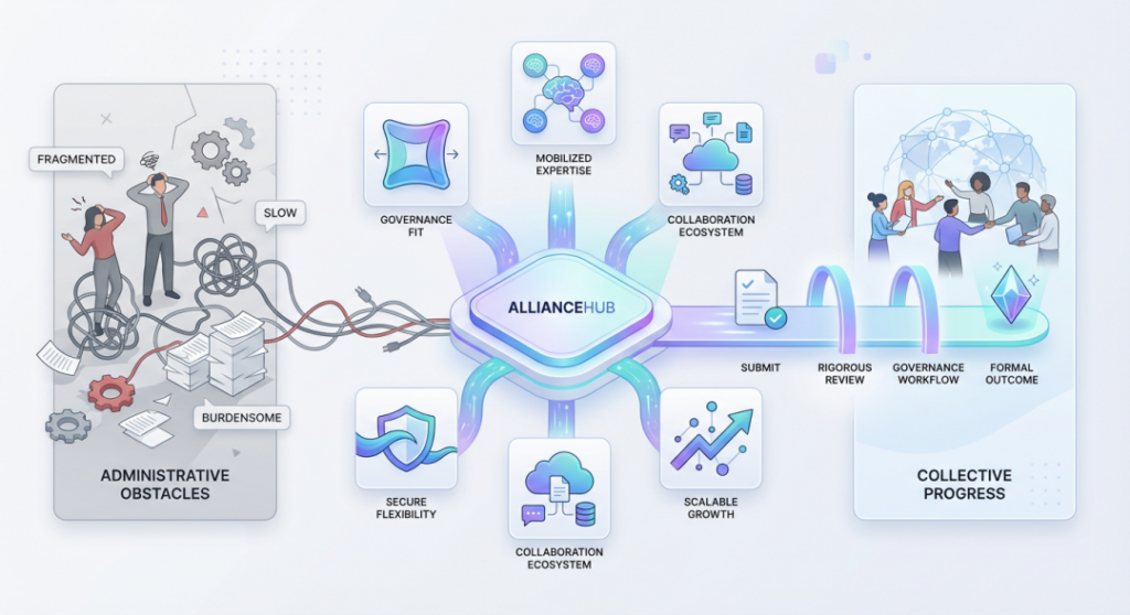 AllianceHub 通过提供与更广泛协作生态集成的综合提案管理框架,解决这些挑战。